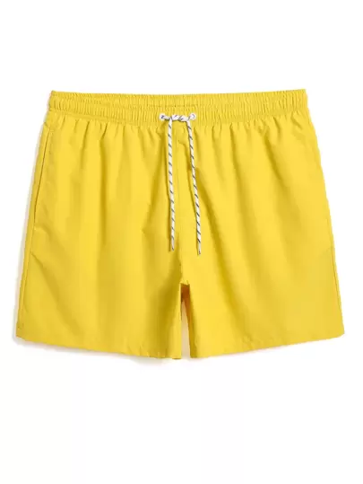 Manfinity KASUA Men Solid Drawstring Waist Swim Trunks, Men's Yellow Swim Shorts, Plain Yellow Swim Trunks, Lemon Yellow Swim Trunks, Men's Swim Trunks - Yellow - View 1