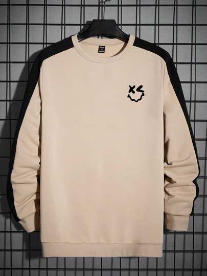 GENTILAND Men'S Contrast Side Seam Knitted Crewneck Sweatshirt - Apricot - View 1