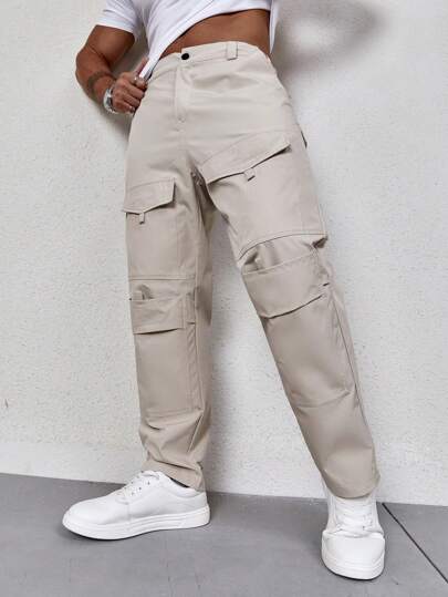 Manfinity LEGND Men's Loose Fit Cargo Pants With Flap Pockets - Grey - View 1
