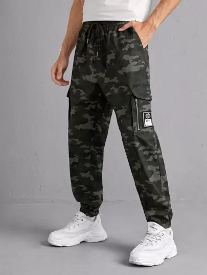 Manfinity Men Camo Print Patch Detail Cargo Pants - Multicolor - View 1
