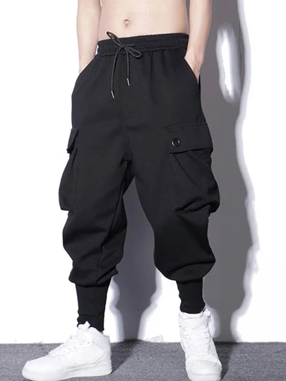 Manfinity Men Drawstring Waist Cargo Pants - Black - View 3