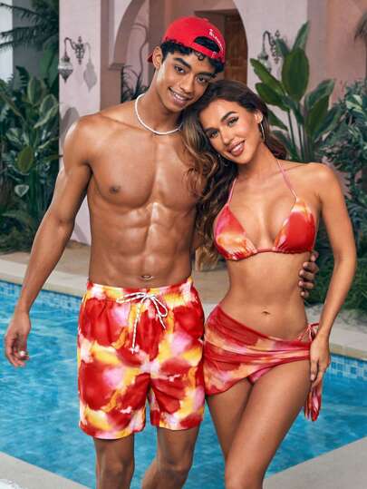 Surfspeed Men'S Drawstring Waistband Tie-Dye Print Beach Shorts - Multicolor - View 1