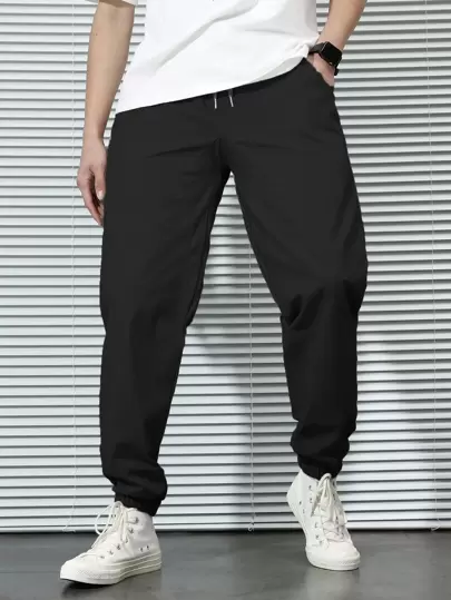 Manfinity Loose Fit Men's Slant Pocket Carrot Pants With Elastic Hem - Black - View 1