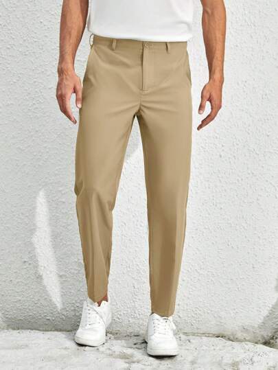 Manfinity VCAY Men Slant Pocket Solid Suit Pants - Khaki - View 1