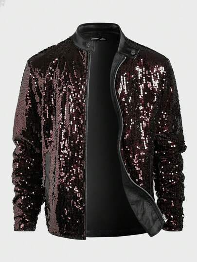Manfinity VCAY Men Zip Up Sequin Jacket Fashionable Daily - Red - View 1