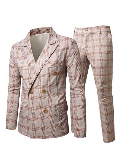 Manfinity Mode Men 2pcs Set: Front Button Long Sleeve Plaid Minimalist Shirt And Trousers Suit - Multicolor - View 1