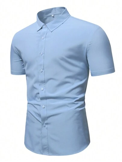 Manfinity Mode Men Solid Button Up Shirt - Baby Blue - View 1