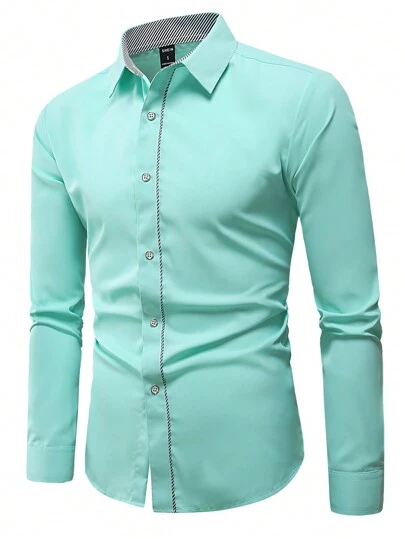 Manfinity Mode Men's Color Block Striped Long Sleeve Shirt - Mint Green - View 1