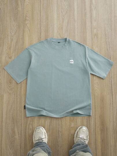 Manfinity VCAY Regular Fit Men's Fashionable Casual Washed Faded Light Blue Relaxed Drop Shoulder T-Shirt - Blue - View 5