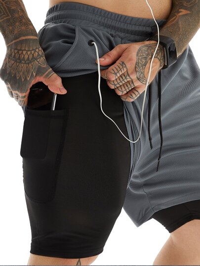 Manfinity Sport Corelite Boyfriend Style Men Drawstring Waist Sports Stretchy Shorts With Phone Pocket Summer Shorts Grey Shorts Sweat Pants - Dark Grey - View 1