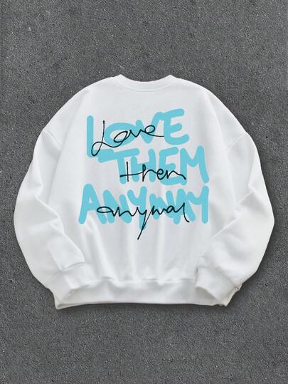 Manfinity ZONE917 ZONE917 Men's Blue & Black "LOVE THEM ANYWAY" Slogan Graphic Print Fleece Pullover Sweatshirt - White - View 3