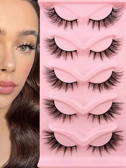 Manga Lashes, 5pairs Cat Eye False Eyelashes Strip Lashes, Lashes, Eyelashes, Fake Lashes - Black - View 5