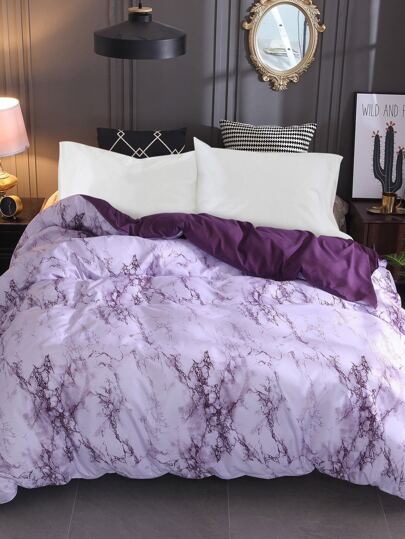 Marble Pattern Duvet Cover Without Filler - Purple - View 1