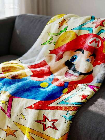 Mario Cartoon, Super Mario Blanket, Super Mario Warm Sleeping Blanket, Digital Printed Flannel Cover Blanket, Theme Velvet Blanket - Multicolor - View 1