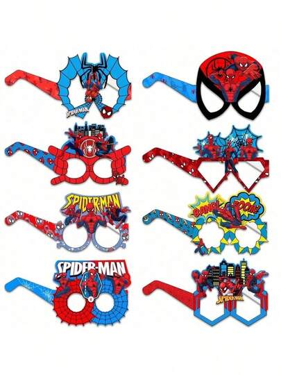 Marvel 1set/8pcs,Superhero Spider Man, Party Photography Props, Paper Glasses, Hero Themed Eye Accessories, Party Supplies, Superhero Paper Glasses, Birthday Party Photography Props Gifts, Suitable As Birthday Gifts, Teacher Gifts, Halloween, Christmas, Welcome Season, Party Decorations, Holiday Party Gifts, Holiday Party Essentials - Multicolor - View 1