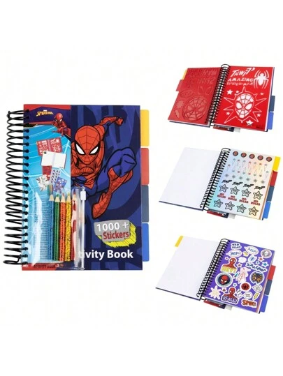 Marvel Sticker Book Over 1000 Spiderman Stickers Scrapbook Colouring Pencils Activity Gift - Multicolor - View 1