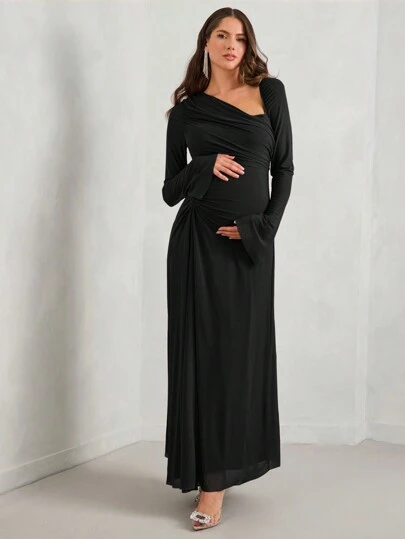 MaterniChic Autumn Women's Fitted Elegant Maternity Dress - Black - View 1