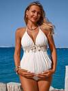 Momance Bộ đồ bơi bầu 2 mảnh chấm bi đen trắng cơ bản cạp cao xếp ly cổ chữ V cho kỳ nghỉ hè 2026, đồ bơi nữ mới về, phù hợp cho đi học, kỳ nghỉ, hẹn hò, trà chiều, phong cách miền Tây, du thuyền, bãi biển, đảo, du lịch đường bộ, mọi mùa, lễ hội âm nhạc, kỳ nghỉ Boho, kỳ nghỉ Bohemian, mùa thu thư giãn, phong cách Boho miền Tây, áo bơi thanh lịch cho nữ, bộ đồ bơi bầu 2 mảnh, đồ bơi chấm bi, bộ đồ bơi cạp cao 2 mảnh, đồ bơi bầu 2 mảnh