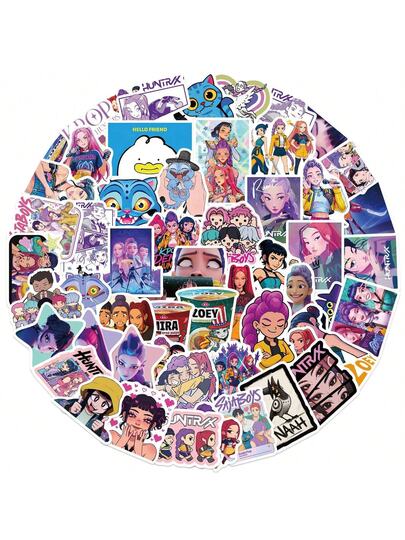 Mattel 60pcs Cartoon Witch Hunting Anime Graffiti Stickers, Decorative For Guitar, Notebook, Luggage, Waterproof, Suitable As Small Gifts For Family And Friends, Valentine's Day, Easter - Multicolor - View 1
