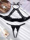 1 Bộ đồ lót ren hở lưng màu đen gợi cảm cho nữ