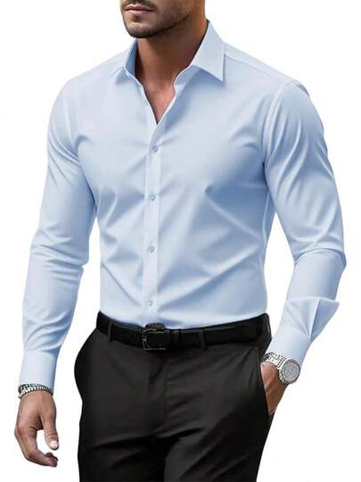 Men's Wrinkle Dress Shirts Formal Long Sleeve Button Down Wedding Business, Style