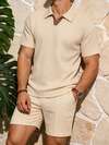 Manfinity CasualCool 2pcs Men's Summer Casual Solid Textured Shirt And Shorts Set