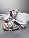 Unisex Casual Breathable Hollow Slip-On Shoes, Graphic Printed, Light Weight Flat Beach Sandals For Indoor/Outdoor Use