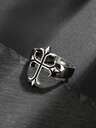 24pcs Fashion Geometric Metal Rings, Black Color, Non-Adjustable, Men's Hip Hop Punk Charm Jewelry, Ring Size Shown In Detail Image
