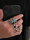 4pcs Punk Style Spiral Star-Shaped Ring Set, Men's Casual Everyday Accessory
