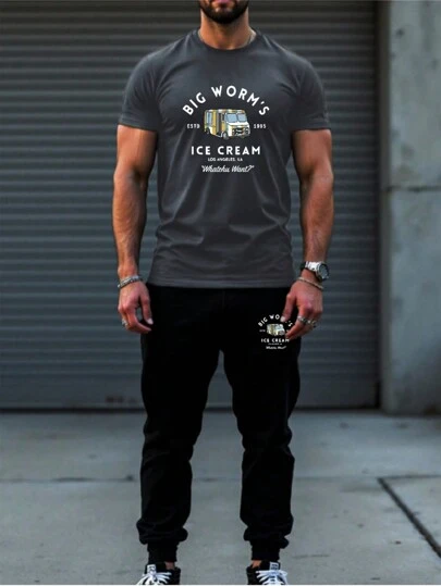 Men's Bus Graphic Print Casual Daily Wear Short Sleeve T-Shirt And Pants Set - Grey - View 1