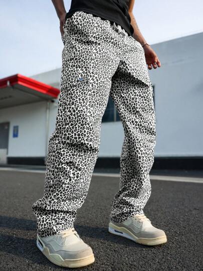 Manfinity EMRG Men's Cargo Leopard Print Straight Loose Casual Pants, Versatile - Multicolor - View 1