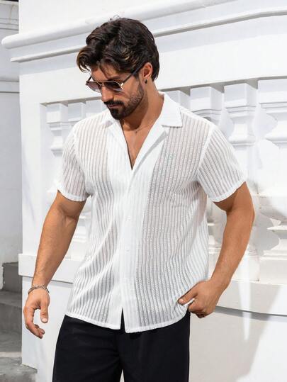 Men's Casual Button Up Short Sleeve Fashion Resort Beach Shirt - White - View 1