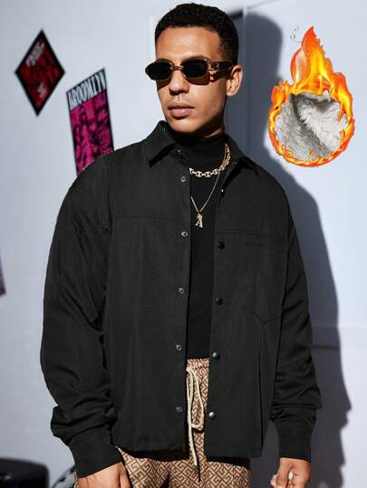 Manfinity VCAY Men's Casual Patchwork Loose Zip-Up Jacket, Long Sleeve, For Fall Winter - Multicolor - View 3