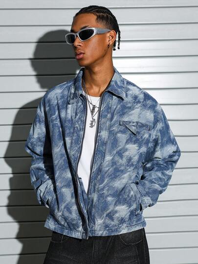 PAVTROS Men's Casual Street Style Multi-Pocket Zip-Up Loose Denim Long Sleeve Jacket, Blue Denim Jacket - Medium Wash - View 1