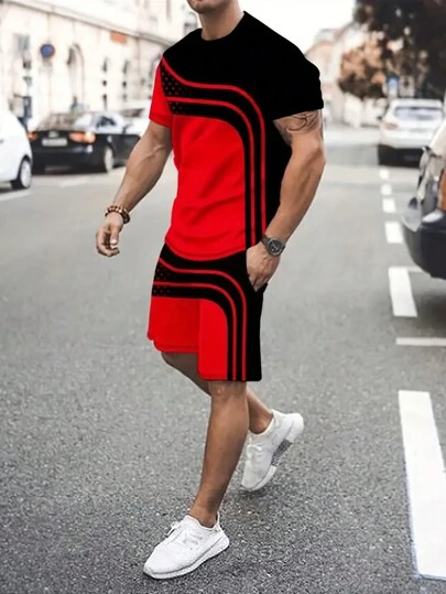 Manfinity Dauomo Men's Color Block Patchwork T-Shirt & Shorts Set - Multicolor - View 1