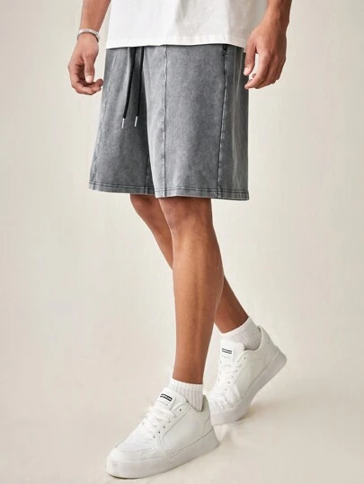 Manfinity RebelGame Men's Fashionable Loose-Fit Elastic Waist Snow Washed Shorts For Daily Casual Wear - Grey - View 1