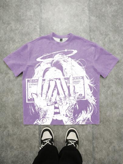 Manfinity Roghcode Men's Figure Print Round Neck Short Sleeve Casual T-Shirt - Mauve Purple - View 1