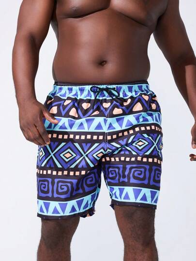 Manfinity Men's Plus Size Printed Vacation Beach Shorts - Multicolor - View 1