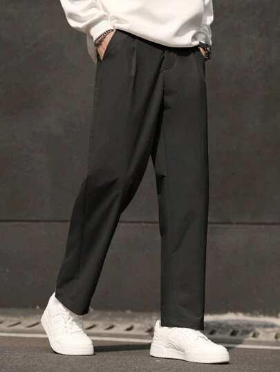 Manfinity Homme Men's Solid Color Pocket Simple Design Casual Suit Pants - Black - View 1