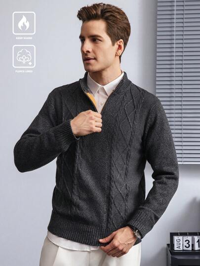 Manfinity Homme Men's Solid Color Zipper Half Placket Long Sleeve Casual Sweater, Autumn/Winter - Black - View 1