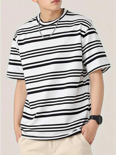 Chillumni Men's Striped Round Neck Short Sleeve Casual Loose T-Shirt - White - View 1