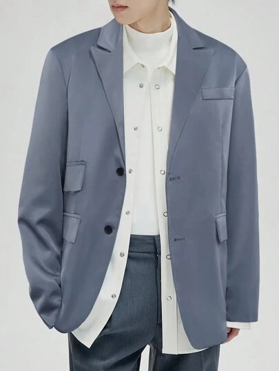 Manfinity EZcore Men 1pc Lapel Collar Flap Pocket Button Front Blazer - Dusty Blue - View 1