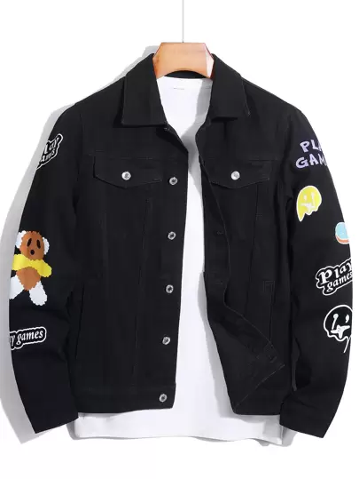Manfinity Men 1pc Letter & Cartoon Graphic Denim Jacket - Black - View 1