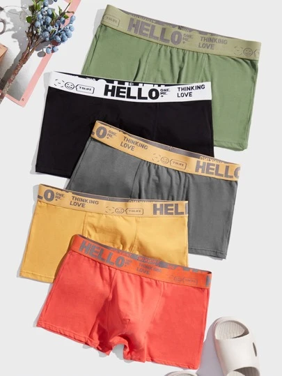 Men 5pcs Letter Graphic Boxer Brief - Multicolor - View 1
