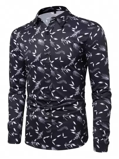 Men Allover Print Button Up Shirt - Black and White - View 1