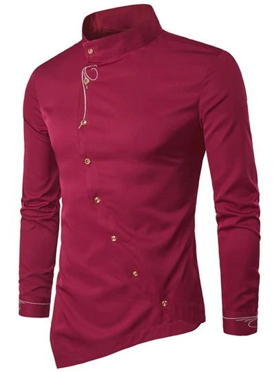 Manfinity Homme Men Asymmetrical Hem Button Front Shirt - Burgundy - View 1
