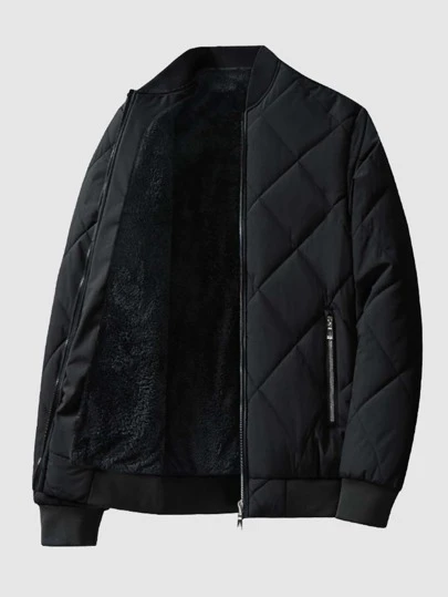 Manfinity Men Baseball Collar Quilted Padded Coat - Black - View 1