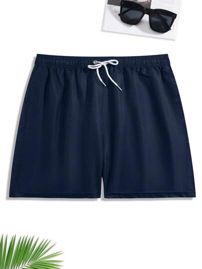 Men Drawstring Waist Swim Trunks - Navy Blue - View 1