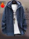 Men's Thick Zip-Up Cardigan, Long Sleeve Solid Color Sweater