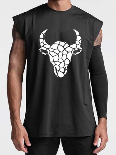 Fitness Men Cattle Head Print Sports Tank Top - Black - View 1